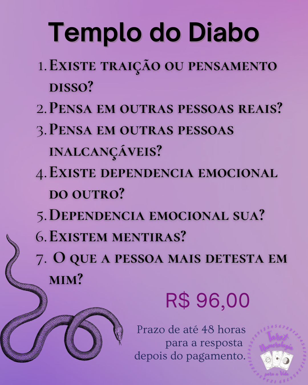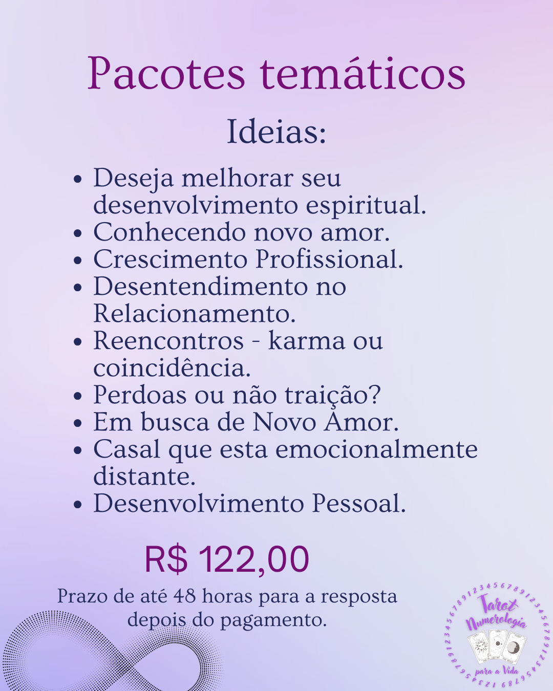 - Não realizo leituras sobre saúde, gravidez ou morte (consulte um profissional).